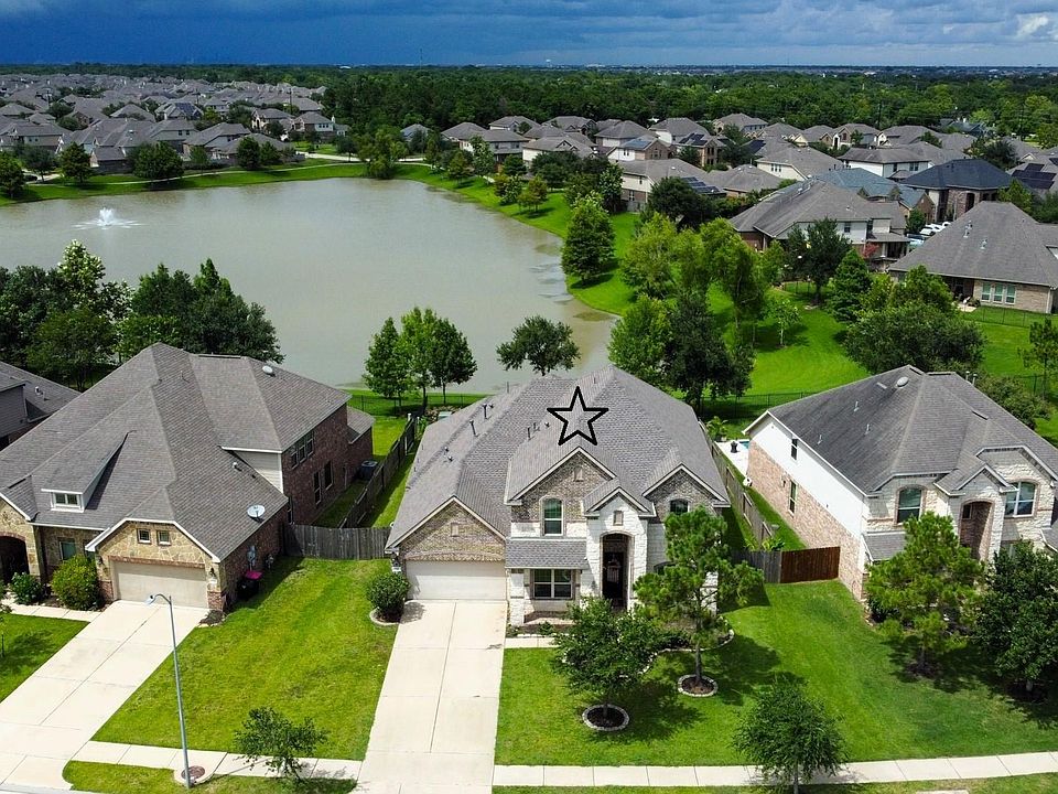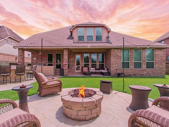 Prime Location! Welcome to 5317 Savannah Bend Dr. in Lakes of Savannah! A gorgeous 5/4 lakefront home with an awesome backyard you must see to appreciate. Covered back patio has multiple areas to entertain or simply relax and unwind. BBQ or sit around the firepit overlooking the water. The living room feels incredibly spacious with a two story soaring ceiling. Two story floor plan with 2 bedrooms down. There is a full bath right next to the second bedroom down making it great for a guest. Upstairs you find a very spacious game room, three bedrooms and two full baths. A BIG bonus is the NEW ROOF that was just installed in June, 2025. Lakes of Savannah is a master planned community offering a community pool, clubhouse, park, splash pad and miles of trails. Hwy. 6 & 288. Right down the road from the Manvel Town Center with HEB. Don't Dream a Dream, Buy One!
