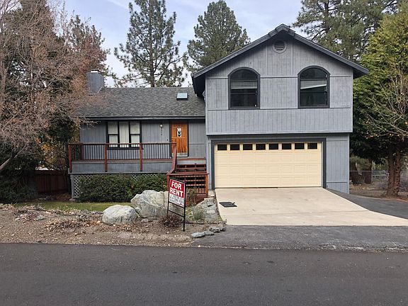 This is a well-maintained home, featuring 3 bedrooms, 2.5 bathrooms, 2 walk in closets, a den, 2 car garage, custom tile work, skylights, newer laminate flooring, gas fireplace, laundry hookups inside with laundry chute. The home also features AC and central heating. The appliances include newer stove, dishwasher and microwave. A refrigerator may or may not be available, pending purchase. There are 3 decks, 1 covered and 2 uncovered, all looking out at the mountains. The fenced, double lots are landscaped including fruit trees, lawn and decorative perennials, all on a drip system. Tenants are responsible for yard maintenance including making sure the small lawn is maintained and property is fire safe each summer. There will be a $100/mth. fee if a gardener is required. This home features mountain views with many trees surrounding it. This wonderful neighborhood is one of the most desirable in Wrightwood and is close to both access roads making it perfect for commuters. NO PETS, smokers or unused cars. Renter responsible for all utilities.
