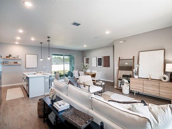 One or more photo(s) has been virtually staged. BUILDER WILL CONTRIBUTE UP TO $15,000 TOWARDS BUYERS CLOSING COSTS/PRE-PAIDS AND/OR A MORTGAGE RATE BUY-DOWN (with a Preferred Lender). This amazing home boasts a large open floorplan with tall ceilings, plenty of windows and an 8 ft slider for a bright, airy, open feeling. This elegant home offers 3 Generous sized bedrooms and 2 full baths. Enter the home to a massive great room including a spacious dining area that opens to the kitchen. The large chef’s kitchen overlooks the great room & dining area and includes quartz counters atop solid wood cabinets with soft closed doors and drawers embellished with elegant hardware. A large, centered island completes this dream room. Just off the kitchen is a walk-in pantry and laundry room. The Primary bedroom is spacious and has a top tier bathroom with a tiled walk-in shower, dual sinks and a massive walk-in closet and separate room w/toilet for privacy. There are 2 more spacious bedrooms that share a Jack and Jill bathroom with a tub/shower and dual vanities. The entire family can comfortably spread out in the expansive great room. There is solid surface flooring throughout the home for easy cleaning. Upgraded raised height vanities and toilets in all bathrooms. There is a covered front porch for your enjoyment and an extra-large covered rear lanai for enjoying the Florida weather in privacy. Don't miss out on this incredible opportunity to own this beautiful home. Call Today!!! Please check in at our model home located at 5069 SW 109th Loop,OR 13392 63RD TERRACE, OCALA, FL 34473 located just off of SW 49th Avenue in Ocala Waterways.
