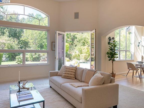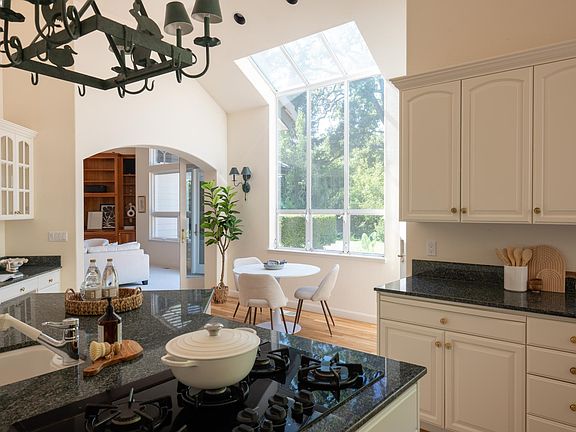 Tucked behind gates in one of Martinez’s most coveted enclaves, this timeless estate rests on a flat, landscaped lot surrounded by the natural beauty of Alhambra Valley. Set within the exclusive Stonehurst community, the single-story residence evokes understated sophistication, offering refined living across a sprawling, light-filled layout. A sweeping driveway leads to a stately façade framed by mature trees and lush greenery. Inside, soaring ceilings and skylights invite abundant natural light, highlighting formal living and dining spaces that blend seamlessly into an open-concept great room. The chef’s kitchen is both stylish and functional, featuring custom built-ins, a walk-in pantry, and a wine cellar. Thoughtfully designed, the home offers three bedrooms in one wing (all with attached bathrooms), while the private primary suite enjoys its own retreat with spa-like soaking tub, steam shower, and garden views. Outside, a serene pool with fountain anchors the backyard oasis, surrounded by lush landscaping, patios for entertaining, and total privacy. 3-car garage, a central vacuum, and a dedicated office that could be a 5th bedroom complete the home.