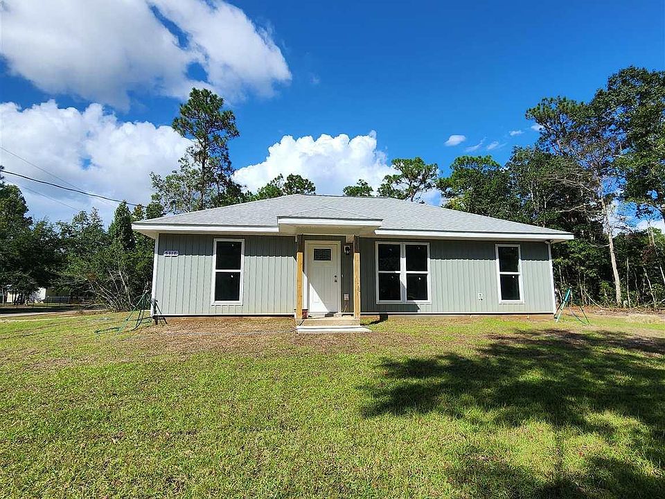 Beautiful New Construction Home on .53 Acres!!!! Come see this brand new home centrally located with easy access to schools, I-10, shopping and restaurants. This wonderful open floor plan is bright and spacious. The Kitchen has White Shaker Style, soft close cabinets, large stainless steel sink with window that over looks the backyard and stainless steel appliances. The counter tops are Granite and there is a bar that will easily accommodate seating for 4 with accent pendant lights. The Laundry room is located off the Kitchen and has shelving for Pantry items. The large Master Bedroom has a walk-in closet and private bath with nice sized shower and linen nook. The additional bedroom is on the other side of the home with a full bath to service it. The home has easy to maintain LVP throughout. The extremely large patio on the back of the home offers a view of the partially wooded lot. The large lot has limitless potential!! There is room to put it a large workshop, pad for RV parking, plant a garden, install a pool or make a large kids play area. Let your imagination run wild here!!! Hurry though! This one won't last long!!!!