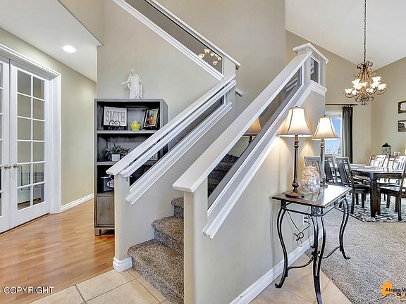 Nestled within the vibrant community of Goldenview Park, this 5 bdrm , 3.75 ba hm offers more than just spectacular views. You will enjoy this quaint well connected neighborhood w/ added convenience of nearby schools & bus stop for easy commute for the little ones. This well crafted hm offers 2 primary bdrms w/ensuites & lots of rm to grow. You will enjoy amazing views of Turnagain Arm & Denali!This home features a main-level bedroom/office, formal living & dining area, family room with gas fireplace. Kit w/granite counters & 6 burner cook top. Upstairs w/primary Bdrm & ensuite along with 2 add bdrms. Lower level walk out basement is fully finished featuring the 2nd primary with ensuite. 3 car garage with great built-ins for extra space and easy organization.