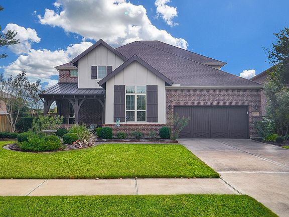 Spectacular Highland home in Park Place section of Cinco Ranch. Featuring 5 bedrooms (2down), and 4.5 baths, 3 car garage and a POOL. Grand entry showcases wooden floor entry that leads to the study with french doors and inviting family room. Formal dining, with a dry bar connecting it to the kitchen. Gourmet kitchen boasts trendy cabinetry, backsplash and quartzite countertops. stainless steel GE MONOGRAM appliances, apron front porcelain sink, under cabinet lighting. Bosch dishwasher (2022). The open concept plan is perfect for entertaining. Spacious primary bedroom has large windows with a great view of the backyard. You'll love the outdoor living space showcasing the pool, a half bath with outdoor shower, covered patio and outdoor kitchen. Game room, and 3 bedrooms upstairs and built in desk. The house has all the hookups needed to be generator ready. Located next to neighborhood park and walking distance to both Junior high and high school (Seven Lakes)