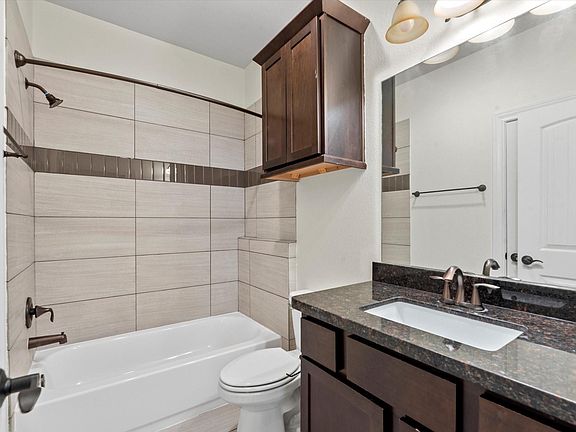 Enjoy this 3-story townhome centrally located in Cottage Grove with easy access to i-10 and 610. The 1st floor stretches from the foyer to a bedroom with a full bath and patio access. As you head up the stairs you will find a spacious kitchen with an island, granite countertops, mosaic tile backsplash and stainless steel appliances (refrigerator included). Along with the kitchen, the 2nd floor highlights a spacious living and dining area as well as a half bath for your guests. Oak hardwood floors extend from the 2nd to 3rd floor and feature high ceilings, crown molding, and neutral carpets in all bedrooms. The primary bedroom is located on the 3rd floor with 1 other bedroom and full bathroom. The primary bathroom has an oversized shower, separate jetted tub, and massive walk-in closet. Full-sized washer and dryer are included in the utility room for your convenience. Schedule your tour today to see this gem in person!