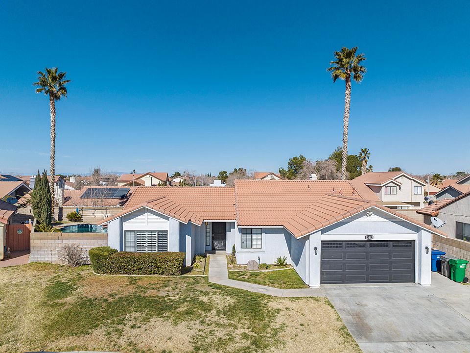 POOL / HOT TUB HOME!!! Fabulous East Palmdale Home, Very Desirable Corner Lot in Cul De Sac .. Three Bedrooms ..Two Full Baths.. Two Car Garage .. Fully Rehabbed..Brand new super cool wood laminate floors and Tile in Wet areas throughout floor plan, the kitchen has been renovated with fresh New cabinets, granite, backsplash, & Brand New Stainless Steel Appliances.. The bathrooms have been renovated with re-faced cabinets, and very complimentary design .. Sod in the front Rearyard is nicely Hardscaped with that beutiful Sparkling POOL & HOT TUB... Oversized Lot, Over 6536 sq ft.. Plenty of privacy and room to play..Come preview this rare property offering today, you'll be pleasantly surprised!