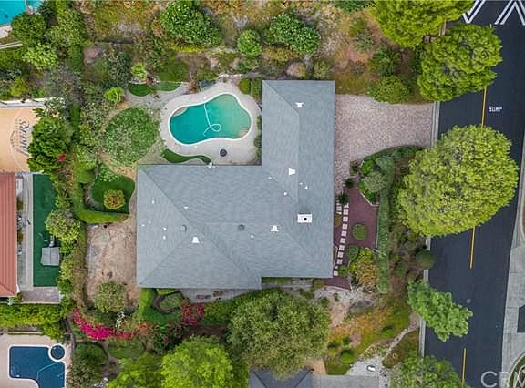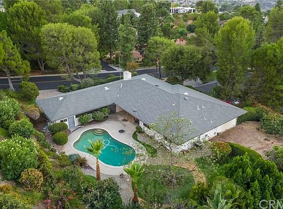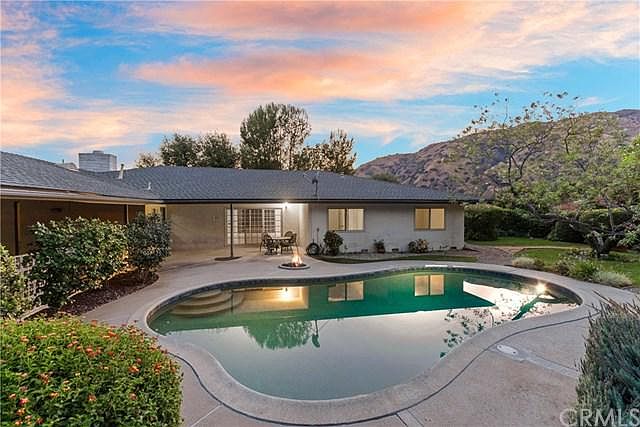 SINGLE STORY POOL HOME ; MOUNTAIN SPRINGS ESTATES GATED COMMUNITY. Situated on an elevated lot w/mature trees, manicured landscaping, driveway w/pavers & a covered front porch private from the street. Front door opens to an entryway w/onyx tiled flooring, retro obscure window & to the living areas. The living room offers a floor-to-ceiling white painted brick fireplace, new carpet, picture windows w/plantation shutters & a formal dining area. Kitchen w/classic white cabinets, tiled counters, parquet flooring, spacious breakfast nook w/views & open to the family room. Family room w/parquet flooring, a ceiling fan & sliding doors to two covered patios on each side of the room, one with mountain & neighborhood views & one w/pool & backyard views. The hallway leads to four bedrooms, the primary bedroom offers a view window, walk-in closet, new carpet & ensuite bathroom w/tiled floors & a walk-in shower. Three additional bedrooms all w/new carpet plus a hall bath w/tiled floors, dual sinks & a shower/tub w/sliding glass enclosure. There is a half hall bathroom plus indoor laundry room w/backyard access. The private backyard features a pebble finished pool, two covered patios, artificial turf lawn, in-ground fire pit, manicured landscaping & breathtaking mountain views. The back side of the house has room for a garden or sitting area w/panoramic mountain views. Two car covered carport plus a spacious workshop attached to the carport, perfect for a car charger. Oak Mesa Elementary.