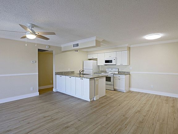 Located on the SECOND FLOOR, this updated 1-bedroom, 1-bathroom condo offers a functional layout with tile flooring throughout. The kitchen features granite countertops and new white appliances. The bathroom includes a granite vanity and a newly tiled walk-in shower. A screened-in lanai provides a comfortable outdoor space, and residents have access to the community pool. Located in the quiet Mystic Gardens community, with convenient access to local shops and amenities.