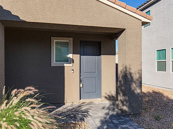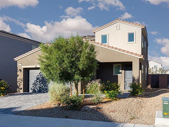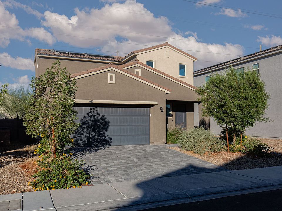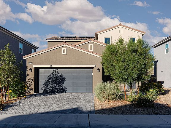 Welcome to this newer 4br/3.5 bath home located in North Las Vegas, NV. This home comes with solar power included at no charge, making it an eco-friendly and cost-effective choice. The house boasts an island kitchen, complete with granite counters and a microwave, perfect for those who love to cook. The breakfast bar provides a cozy spot for morning meals and casual dining. The home is equipped with ceiling fans for added comfort. The master bedroom, conveniently located downstairs, features a separate tub and shower, and separate vanities, offering a luxurious and private retreat. The upstairs laundry facilities add to the convenience of this home. Outside, you'll find a large paver patio, perfect for outdoor entertaining, and an artificial turf backyard, offering a low-maintenance outdoor space. This home combines modern amenities with thoughtful design, making it a perfect choice for those seeking a comfortable and sustainable living environment.