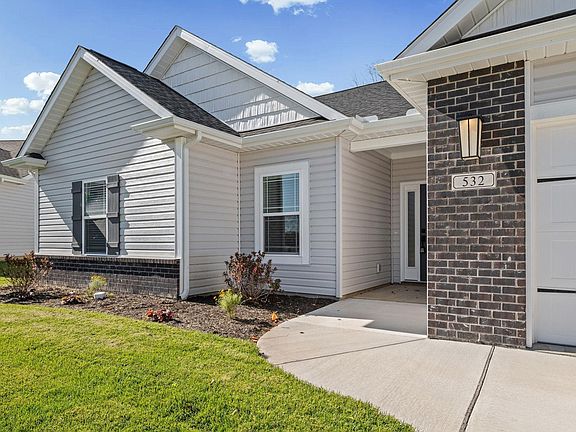 Welcome to this beautiful and immaculate home in the prestigious Barrington Woods community! This all-new residence is perfectly positioned within a quiet cul-de-sac, surrounded by serene, wooded views, and offers a harmonious blend of craftsmanship, comfort, and modern elegance. Featuring three spacious bedrooms, two full baths, and a versatile home office (or 4th bedroom option), this flexible space can easily serve as a private workspace or cozy retreat—tailored to your lifestyle. Chef’s Kitchen & Open-Concept Living: The chef’s kitchen is a true showstopper, showcasing gourmet stainless-steel appliances, custom cabinetry with crown molding, quartz countertops, and an expansive island perfect for gathering. The open-concept design flows effortlessly into the great room, creating an ideal setting for both entertaining and everyday living. Luxurious Primary Suite: Your primary suite is a private retreat, featuring a large bedroom and spa-inspired bath with a custom tile walk-in shower, dual sinks, and a California Closet system offering exceptional organization and style. Elegant Finishes & Functional Design: Throughout the main living areas, enjoy luxury vinyl plank flooring, fresh custom paint, 9-foot ceilings, and designer finishes that elevate every detail. A dedicated laundry room with cabinetry adds both convenience and functionality. Outdoor Living & Curb Appeal: Step outside to enjoy both a covered patio and a spacious 14' x 14' sun patio—perfect for outdoor dining, entertaining, or relaxing in your private wooded setting. An allowance for added landscaping for the back yard is negotiable from the seller/builder. The exterior highlights board & batten shutters, a brick façade, and a custom front door that warmly welcomes you home. Built with high-efficiency mechanicals, energy-saving features, and countless upgraded finishes, this home also includes a three-car garage and a quality builder’s warranty—offering peace of mind and lasting value. Conveniently located near top-rated schools, restaurants, hospitals, and easy access to I-65. 532 Bearsden Lane — A truly one-of-a-kind home that beautifully combines design, comfort, and timeless appeal. Make this the place where your new story begins!