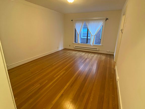 Spacious kitchenWhite oak hardwood floorsWalk-in closetBrick buildingFull-sized bathtubQuiet residential quarterThermostat-controlled baseboard heat