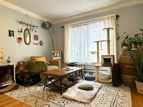 The building offers on-site laundry (with convenient pay-by-phone feature), parking (based on availability - can join waitlist becasue none are currently available), bike storage, and remote intercom entry. Cats are welcome. NO DOGS, sorry.
