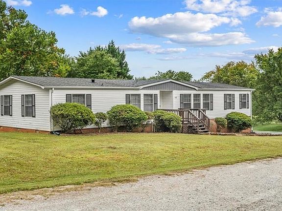 This beautiful manufactured home (remodeled in 2022, roof, paint, flooring, garden tub, granite countertops in kitchen and baths) sits on a permanent brick foundation and offers the feel of country living that is only 10 minutes from Greensboro! Step inside to a proper foyer with coat closet leading to an expansive living room featuring a corner fireplace to your right, and a formal dining room to the left! The kitchen boast a center island, loads of counter and cabinet space, and a pantry. The split bedroom design offers peace in the large primary suite with 2 walk-in closets and en-suite with separate tub and shower. Rounding out the home are 2 nice sized bedrooms and large laundry room. Outside you can enjoy grilling and dining on the deck or patio in the backyard and extra storage is available in the building. Don't miss this wonderful opportunity to own a piece of the country close to the city!
