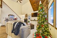Quartz countertopsCustom live-edge barSpacious lounge areaSpa-inspired bathLarge islandStunning picture-window viewsVaulted wood-planked ceilings
