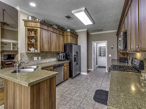 This is the house for you to call home! This lovely split plan home has 4 large bedrooms, 2 bathrooms, walk-in closets in every bedroom a large backyard with wooden privacy fence, mature landscaping in the front and backyard and trees for shade. The large kitchen has abundant storage to include built-in slide out drawers inside the lower cabinets. The master suite has an extra touch of cozy with the gas logs open to both the bedroom and bathroom so you can enjoy a soak in the jetted tub and gaze at the relaxing fire after a busy day. The large windows across the back of the house shower the hardwood floor with natural light. There is plenty of room on the covered back porch to entertain and make memories with family and friends. Hidden Hills is close to schools, churches, shopping and the Rez yet offers a quiet place to call home. To schedule a private showing call me or your preferred real estate professional.