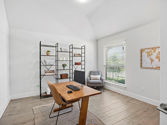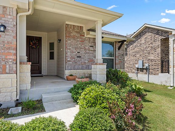 Welcome to this beautifully maintained single-story home in the desirable Star Ranch community, offering the perfect blend of modern finishes, thoughtful design, and convenient location. With 1,762 square feet, 3 bedrooms, 2 full bathrooms, large office, and 2-car garage, this home is designed for both comfort and functionality. Built in 2021, the exterior features stone and brick veneer and a covered front patio ideal for enjoying your morning coffee or greeting guests. Inside, you'll find wood-look tile flooring throughout the main living areas for durability and style, with plush carpet in the bedrooms. The open-concept layout creates a seamless flow from the living room, featuring a gas log fireplace with a custom tile, to the kitchen and dining areas perfect for everyday living and entertaining. The kitchen is both functional and sleek, offering white cabinetry, stainless steel appliances, a center island, breakfast bar, and quartz countertops. Whether you're prepping dinner or gathering with friends, this space delivers on both style and practicality. A spacious dedicated office provides flexibility for working from home. The primary suite offers a peaceful retreat with plenty of natural light and an en-suite bath, while two additional bedrooms and a second full bath complete the layout. Enjoy outdoor living with a fully fenced backyard and covered patio, ideal for weekend grilling or relaxing evenings. Located just 2 minutes from HEB and the 130 Toll Road, this home offers quick access to downtown Austin, major tech companies, and Austin-Bergstrom Airport. You're also just 15 minutes from the new Samsung plant in Taylor and 10 minutes from Stone Hill Town Center, placing shopping, dining, and entertainment right at your fingertips. This is a move-in ready home that combines style, comfort, and convenience in one exceptional package.