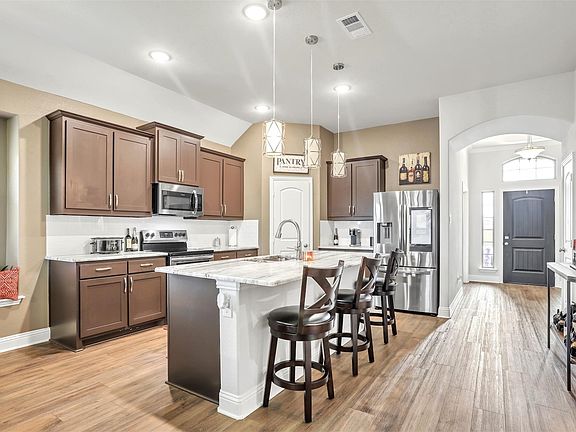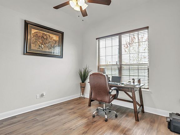 It's truly a GEM! Welcome to this meticulously maintained single story beauty that was designed for comfort. Upon entering you are greeted by an open floor plan with ample natural light, and a dedicated office nook to enhances productivity, ideal for remote work or study. The living room is the focal point, boasting a fireplace and a great view to the backyard. Kitchen offers stainless steel appliances, granite countertops, large pantry, all enhanced by ample storage space. Retreat to the cozy primary bedroom to enjoy a large garden tub, separate shower, double vanity, and a large walk-in closet. Outside the well-manicured front yard welcomes you home, while the backyard includes a covered patio, and plenty of space for family activities and pets.