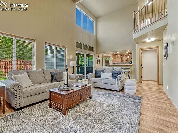 Imagine living in the best location! Come view this Academy D20 School District and Northgate area home, near schools, hiking, biking, and shopping. This beautiful and meticulously maintained home blends comfort and style with mountain views and mature landscaping. Once you have stepped inside you will find a spacious family room with cozy gas fireplace and a gourmet eat-in kitchen that boasts granite countertops, a center island, a breakfast bar, and stainless-steel appliances or step outdoors into a retreat with a custom-designed patio, featuring an impressive eleven-foot gable that creates a grand, open feel. The tongue-and-groove pine ceiling adds warmth and character, blending rustic charm with timeless elegance. Perfect for entertaining or simply unwinding, it’s a space that feels both inviting and extraordinary. The primary suite is a well-appointed private retreat with a large walk-in closet and a spa-like bath complete with a Jetta soaking tub. Additional features include new carpet on upper and lower levels, luxury vinyl tile on main, new kitchen and bath backsplash, window treatments, LED lighting, James Hardie fiber cement siding w/ warranty, saltwater hot tub is negotiable, smart thermostat, new patio slider, exterior lighting, insulated garage door and opener w/ app, 75-gallon water heater w/ extended warranty, new faucets and hardware in kitchen and baths, new cabinets, sinks and toilets throughout, new tub and shower tile, ceiling fans in upstairs bedrooms, smart sprinkler controls, and more. Finished basement with an exercise area. Central A/C and forced-air heating for year-round comfort. The attached 2-car garage provides convenience and additional storage. Perfect for those who love the outdoors, this home offers quick access to hiking trails, golf, and cycling routes while minutes from city conveniences. Within minutes of Flying Horse Country Club, Polaris Point, USAFA, USAFA golf, and only 30 minutes from Castle Rock and DTC.