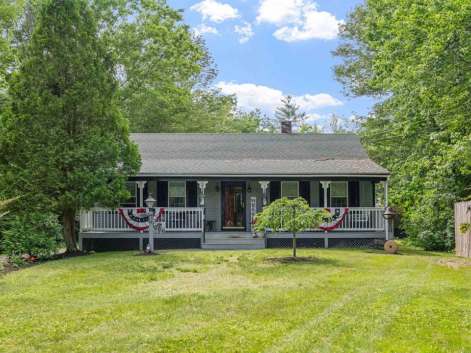 Moultonboro, NH 03254- If you are looking to purchase the nicest home on the market presently in this price range, you will want to act on this opportunity ASAP. Just a short ride to one of Moultonboro's public town beaches on Lake Winnipesaukee, close to Ossipee Mountain hiking trails and if you like to ride snowmobiles, this property is just what you have been waiting to see. Situated on a beautiful, wooded, level lot this home could be perfect for you, offering everything you are looking for in your next home. No matter what stage of life you are in, this ranch style home is ready for you with nothing that needs to be done for you to enjoy this home today. As you drive in, you will see the farmer's porch that extends the length of the home & will give you hours of rest on warm days. When you drive around the back side of the home, you will see that large detached 2-car garage that could easily double as a workshop. The mature landscaping is simple & very colorful this time of year. Inside the home is well appointed with beautiful hardwood floors on the main level, nice size bedrooms & a living room that is perfect for entertaining or relaxing. The lower level is mostly finished with a family room, another room presently used for overflow guests (it has an attached bath) a laundry room and great storage space. The appliances and major systems seem to be in good order. As the seller prepares to open this home to the public, showings are delayed and will begin 6/22/2024