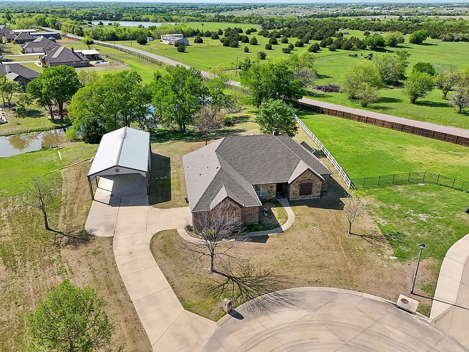 Welcome to your dream home on ONE ACRE in Nevada Lakes. No houses close & the trees in back block the view of the few homes behind you which adds to the country atmosphere, plus you have direct access to your pond. This home was CUSTOMIZED from the start with large open living spaces & first floor bedrooms.The large Master Retreat is tucked away in the back of the home & boasts a cozy sitting space, large bath with soaking tub, shower, separate vanities, great built-in storage cabinets & lg walk-in closet. Upstairs boasts a Game Room, Work-out Room, Flex Room & the attic with decking great for storage. The covered patio is an invitation to relax on a cool & quiet evening or grill your favorite meal. A separate building with over 700 sq ft is complete with a double garage door, carport for additional vehicles (570 sq ft), 2nd single garage door on the side, insulated, separate breaker panel, wired for internet & intercom to the house & security alarm system. Entire home is well insulated with spray foam and 6 in studs. Roof replaced in 2016, Hot water heater approx 2021, AC coils replaced approx 2022. Make yourself at home at this location - best of both worlds--quiet and private but still having the conveniences of city services. Schools are conveniently close. Lake Lavon is also nearby & tons of shopping & dining choices along Lake Ray Hubbard in Rockwall too. USDA financing available. MOVTIVATED SELLER!! Priced way below appraised amount.