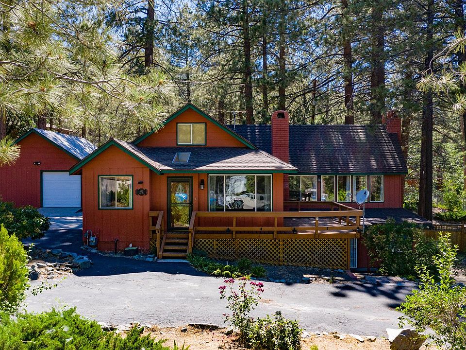 WEST SIDE WRIGHTWOOD HOME WITH LOTS TO LOVE! Sporting a DOUBLE LOT AND NEARLY A HALF ACRE OF LAND NOT IN FLOOD ZONE, this versatile home has something to offer for everyone. Outside, tons of parking and an OVERSIZED SINGLE CAR GARAGE. THE BACKYARD IS LIKE A PARK and backs to the wash for privacy and room to park the RV. Owning this much land in Wrightwood is unheard of. Let's head inside, as you shed your boots and coats in the mud room and into your living, kitchen and dining area, complete with wood burning stove, STAINLESS STEEL APPLIANCES and an open but cozy feel. New carpet and 2 STUNNING, NEWLY REMODELED BATHROOMS AND MASTER BEDROOM are on the main level as well, and master features an EN SUITE and WALK IN CLOSET. Over to the BONUS ROOM with additional wood burning fireplace and french doors to the back deck and your awesome yard. From the bonus room, head down to the finished basement with DEDICATED ENTRANCE and privacy from the main level, with one bedroom, gas fireplace, 3/4 bath, and equipped with A/C... PERFECT FOR EXTENDED FAMILY OR BNB options. Head up the stairs from the bonus room to the upstairs level, this area has so many options and is ducted for heat, A/C and dedicated entrance from the backyard. Speaking of A/C, check out YOUR BRAND NEW EFFICIENT A/C AND HEATING UNITS, perfect for our four seasons.