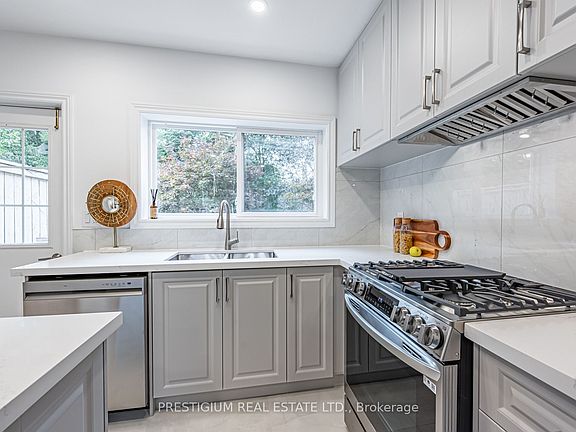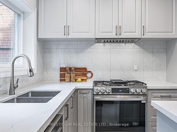 A Lovely Renovated Home In Coveted Davisville Village! It's The Perfect Starter Home Or Condo Alternative. A Hard To Find Private Drive Fits Two Cars In Front Yard. Newly Upgraded Open Concept Kitchen Offers Plenty Of Cabinet Storage. New Kitchen Appliances Gas Range and quartz countertop. Fully Finished Basement Has Separate Door To Walk Out Stairs. Basement Space Can Set Up As Home Studio Or Office Or Another Bedroom. New Deck And Interlocking At Backyard.