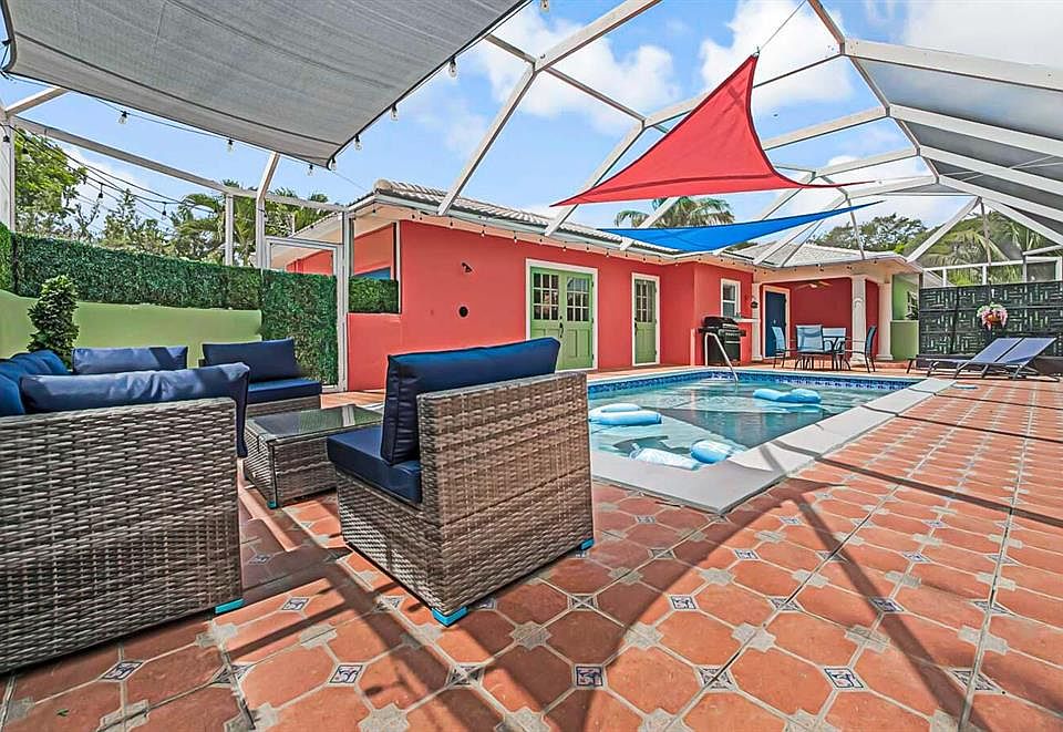 Tucked in the heart of the historic district, Sun Sail Retreat is a bright and breezy 3-bedroom, 2-bath vacation home with everything you need for a classic South Florida getaway. From a private screened-in pool with colorful sun sails to a fun garage game room and fully fenced yard, this home combines relaxation, comfort, and play.