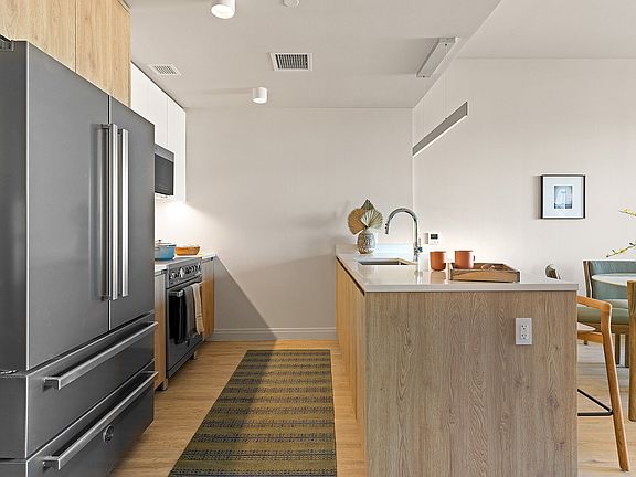 Inside, every detail speaks to elevated living from wide-plank wood-style flooring and custom Italian open-concept kitchens with quartz countertops and premium Bertazzoni stainless-steel appliances, to walk-in closets and oversized laundry/mud rooms that bring a rare level of functionality to Brooklyn's luxury rental market. The spa-inspired bathrooms feature sleek vanities and contemporary fixtures, while central air and heat, Wi-Fi-enabled smart locks, and custom window treatments complete each residence with comfort and ease.