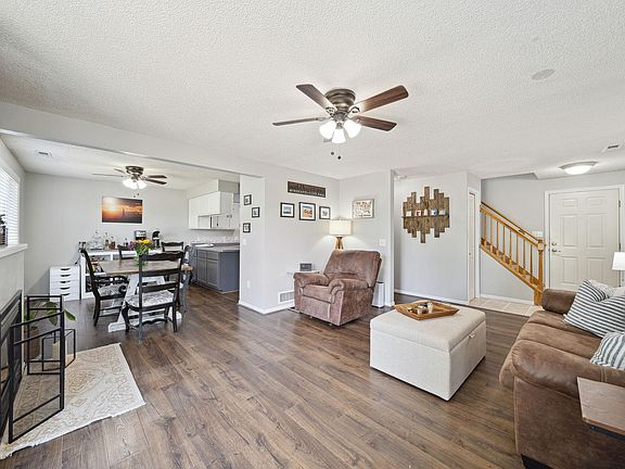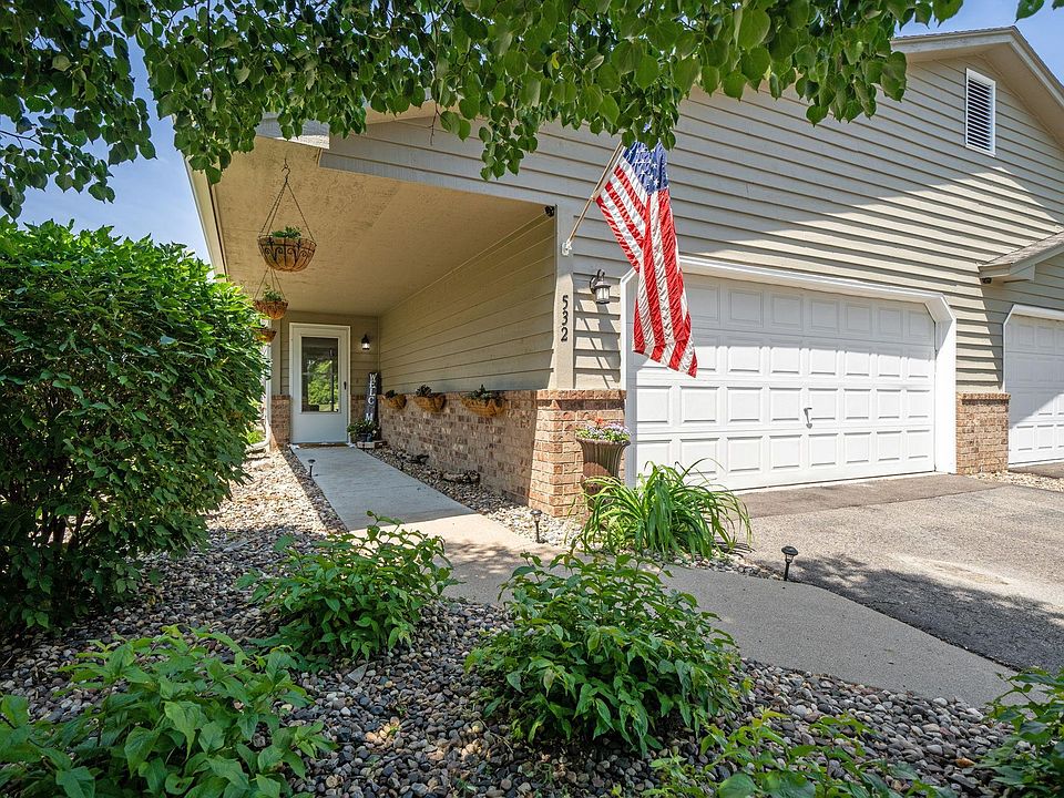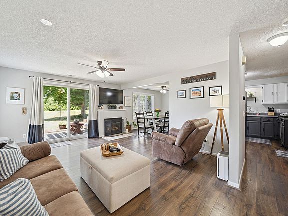 Welcome to this lovely, well-cared for 2 bed, 2 bath twin home. The main level features an updated kitchen, dining area, and living room with a cozy gas fireplace and natural light from the patio. Upstairs you will find the primary bedroom with a walk-thru full bath & walk-in closet, 2nd bedroom with 2 closets – great for storage, and a separate laundry room. This home offers great outdoor space with a patio that backs up to city land and walking trails. Updates include main level flooring, exterior paint, new AC, refrigerator, washing machine, and water softener. Close to parks, trails, downtown Chaska, and quick access to 212 – this is one you will not want to miss!