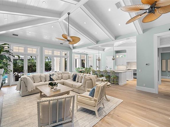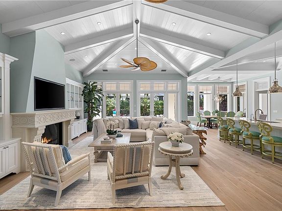 Presenting a truly exceptional custom-built estate in the prestigious Park Shore neighborhood of Naples, Florida. Designed with unparalleled craftsmanship and attention to detail, this award-winning masterpiece blends sophistication, comfort, and a prime location into one extraordinary offering. As you arrive, the home's elegant facade is framed by extensive mature landscaping, setting the stage for the grandeur within. The stunning mahogany front entrance doors open to a light-filled interior with soaring cathedral ceilings, white oak flooring throughout, and a striking fireplace anchoring the living space. The chef's kitchen is a statement in luxury, featuring dual islands, handcrafted Ruffino cabinetry, Calcite quartzite countertops, and top-tier Wolf, Sub-Zero, and Miele appliances. A walk-in pantry and a butler's pantry--complete with a second dishwasher and wine cooler--offer both convenience and refined entertaining options. Designed for both relaxation and hosting, the home boasts an exceptional outdoor living space with total backyard privacy. The south-facing saltwater pool and infinity-edge spa are bathed in sunlight all day, complemented by tranquil fountains, a marble pool deck, and a sun shelf for lounging. The outdoor kitchen, gas fire pit patio, and lanai with a fire pit table create a seamless indoor-outdoor lifestyle, perfect for entertaining under the Naples sky. Thoughtfully designed for guests and residents alike, the first level features a primary wing with spacious closets and a spa-like primary bath, a private guest suite with an en-suite bath, and an office space with custom built-in cabinetry. The second-level VIP suite offers an expansive retreat with an oversized, opulent bathroom, a private balcony, and a loft for added versatility. Perfectly positioned near Naples' renowned beaches, fine dining, and upscale shopping, this exquisite residence delivers the ultimate in luxury and lifestyle--a rare opportunity to own a truly one-of-a-kind home in one of Naples' most sought-after locations. Experience the essence of Park Shore living--schedule your private tour today.