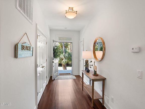 Nestled on a private cul-de-sac, this custom-built gem sits on one of the largest lots on the island, offering both space & seclusion. With 4 spacious bedrooms & 4 full baths, this home is perfect for hosting family & friends or tapping into the short-term rental market. The layout is thoughtfully designed with 2 en-suite bedrooms downstairs & an open kitchen, dining & living area that flows seamlessly out to a screened in porch & open deck. Upstairs, you'll find an additional living area with 2 more bedrooms & 2 full baths, providing ample space for everyone. The large garage is accessible via inside stairs & offers plenty of storage, a lock-out area that could be converted to a game room & even an outside shower for convenience. This home truly combines comfort with functionality. The drone photos clearly show the unique seclusion of this property. After spending the day with hundreds of your closest friends on the beautiful Fripp Island beach, you or your guests can retreat to complete privacy. Entering from the front porch you will be welcomed into a wide foyer and hall that hints at the spaciousness that awaits. Along the way to the generous living spaces you'll delight in the luxury vinyl plank flooring that was recently installed throughout the main level. Dine inside or step out to the screened in porch and enjoy your meal amidst the sights and sounds of the abundant foliage and wildlife surrounding you. Members of your party want to watch different shows? No problem here with two living rooms on two different levels and TV's in every room! With 4 bedrooms and 4 bathrooms, you can imagine how attractive this property is for short term rentals. This is a great value and a great way to own on Fripp. This turnkey home comes fully furnished with 2 golf carts. There is a nice appliance package as well, to include all kitchen appliances, a washer/dryer & a second full refrigerator in the garage.