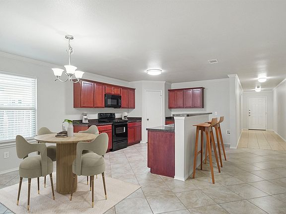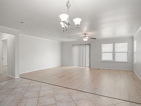 Updated, spacious home in Remington Point located within Eagle Mountain ISD. Fresh, neutral paint throughout, updated designer flooring featuring 18inch tile laid on the diagonal with travertine transitions and new luxury vinyl plank! Bright, updated lighting with two inch blinds help to make this an amazing space! As you enter the home, you're greeted with a large entry hall with two bedrooms and a full bathroom at the front of the house. To your left, as you walk down the impressive entry hall, you'll find a large media room with double French doors and built in shelving. The media room is buffered with a spacious transition area which also leads to a generous sized laundry room. The kitchen is oversized with a long breakfast bar and opens to the living room. There is a nice dining space combined with the kitchen also open to the living room. The primary suite includes a second linen closet off of its private hall and is very large. The primary suite bath is very nice and has a big walk in closet. The most notable features of the home are its flowing floor-plan, very spacious rooms, and the beautiful paint and tile work throughout. Schedule your tour today, and make this your new home!