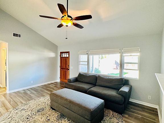 This 3 bed/2bath home located in Oak View awaits you! This home is tucked away, gated and providing peace and privacy with a spacious front yard and porch. Walking into this beautiful home you will first notice vaulted ceilings providing an open, bright and airy space. Beautiful hardwood-like tile floors throughout, fireplace in living room, granite countertops and stainless steel appliances in the kitchen, light and bright bedrooms, spacious master bedroom with beautifully renovated on-suite bathroom. Walk through the sliding glass doors located in the eat-in kitchen to a covered patio, fenced in backyard, raised garden beds and mountain views to enjoy what Ojai Valley is all about. Attached 2 car garage with plenty of storage, and monthly gardening service provided. Centrally located to trails, conveniences and short drive to town or the beach. Call to set up a viewing today! This home will go fast!