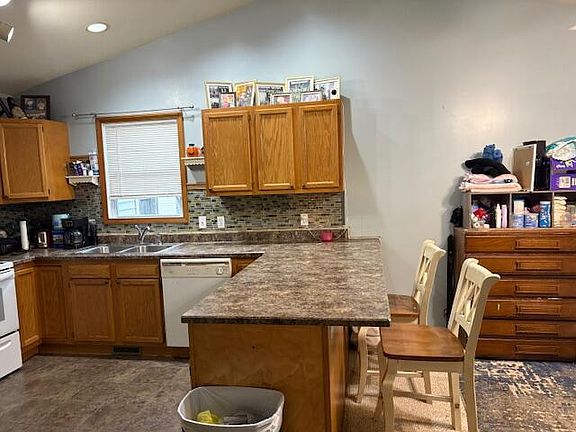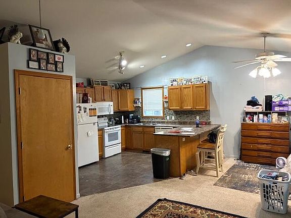 Amazing Hartford Ranch! This move-in ready 3-bedroom, 2-bath home offers comfort, style, and great updates throughout. Built in 2000, it features vaulted ceilings in the kitchen and living room, a snack bar, and main floor laundry. Enjoy the fully fenced backyard with a large deck, big storage shed, and playset—all included! The spacious primary suite has its own full bath, and the attached oversized 2 1/2-car finished garage provides extra room for storage or projects. Recent updates include fresh paint, new washer and dryer, updated electrical (2022), new garage door and spring (2024), refinished deck (2025), new thermostat, and hot water tank (2025). Energy-efficient design keeps utility costs low. Conveniently located near schools, parks, and downtown amenities—this home is truly move-in ready. Schedule your showing today!