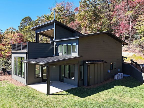 Welcome to 532 Winding View Trail, a stunning new construction by Patsios Homes, perfectly blending luxury and comfort with breathtaking long-range mountain views. This 3-bedroom, 3.5-bath home is thoughtfully designed with high-quality craftsmanship and superior finishes: custom-made cabinetry, quarter-sawn oak throughout the main living, aluminum clad casement windows, Samsung smart appliances, standing seam metal roof, and more; built to last a lifetime. The heart of this home includes a dedicated office space, powder room, walk-in pantry, mud room from the double garage, and beautiful kitchen space overlooking the open living area with a Scandinavian-styled cylindrical wood burning stove, creating a cozy space for relaxing and entertaining. The primary suite, located on the main level, continues with the dramatic, mountain range view. Custom cabinetry in the bedroom, access to the covered porch, and in the bathroom suite, you'll find a dual vanity, separate shower & tub, and walk-in closet. Up the stairs, another bonus living space with two bedrooms and two baths. One of the true highlights is the expansive rooftop deck (complete with Trex flooring), where you can take in panoramic views for miles while enjoying another TV space outfitted with a custom-built media center console. Whether enjoying a quiet morning or hosting an evening gathering, this outdoor space promises to be a favorite.