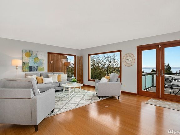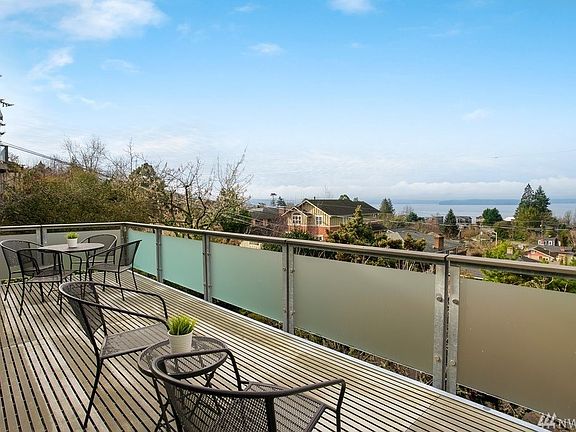Understated exterior w/ WOW factor of Endless Sound & Mountain Views! Fall in love with the West Facing elevated modern entertainment sized deck & 2nd oversized private backyard deck. Thoughtful spaces & design thru-out. Spacious kitchen w/ lg pantry. VIEW master suite also opens to the view deck - lots of closet space here. Fabulous Anderson wood wrapped windows & doors. Tons of natural light. Terraced landscaping. 2-car garage w/ adjacent workshop & tons of storage! New roof, heat pump & A/C.