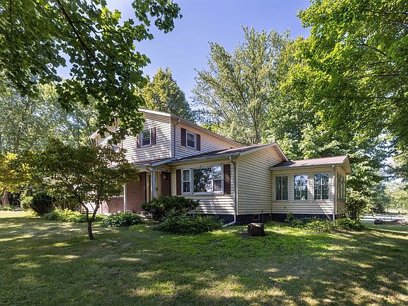 Spacious home on 3 acres in Fairview SD located next to Pleasant Ridge Park! The acreage features Invisible Fencing, a fenced- in pasture and a 2- stall barn with a work space and wood stove for heat. Many trees, shrubs & flowers adorn the partially- shaded yard. Two- car garage is attached to the 3- bedroom, 2.5 bath house with plenty of room for everyone. There are two sunrooms on the first floor, both with heat & one has sunlight streaming in from the skylight. One family room has fresh drywall (just needs your choice of paint!) and a fireplace; the other family room has wet bar, wood stove and two walls of windows that overlook the rear yard. The eatin kitchen has SS appliances and ceramic tile flooring. Dining & living room are adjoining and have hardwood floors. Main bath is located upstairs with all three bedrooms. Master bath has double closets & en suite. Full basement; gas water boiler heat; generator panel is ready; water softener; blacktop driveway; ALL appliances included!