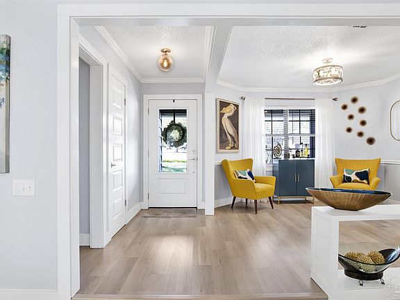 Welcome to this beautifully updated 3-bedroom, 2-bath 2 car garage home that offers everything you've been looking for—GREAT LOCATION, GREAT CURB APPEAL, GREAT HOME! Step inside and enjoy the open living concept with a spacious great room featuring a soaring cathedral ceiling and a cozy fireplace with an electric insert. The luxury vinyl plank flooring throughout complements the neutral yet modern color palette, creating a seamless flow from room to room. The great room is open to the dining area, which boasts a charming bay window, allowing natural light to fill the space. Just adjacent is the kitchen, which is a true highlight, featuring a large peninsula with sleek granite countertops, shaker-style cabinets, a pantry, and stainless steel appliances, perfect for both cooking and entertaining. The sunroom is a fantastic bonus with large windows on all sides, filling the room with light and providing an additional living space. It’s climate-controlled with a split mini system for year-round comfort. The primary suite offers a retreat with a spacious bedroom featuring a cathedral ceiling. The luxurious primary bath includes a stylish freestanding bathtub, a separate walk-in shower, granite counters, and a walk-in closet complete with built-in wardrobe for ample storage. The additional bedrooms are generously sized, each with ceiling fans and plenty of closet space, perfect for family or guests. The additional full bath features granite counters and a tub/shower combo. Step outside to the privacy-fenced backyard, where you'll find a large open patio ideal for outdoor entertaining, beautiful shade trees offering plenty of relaxation space, and a convenient storage building for all your outdoor needs. This home truly has it all! Come see it today!