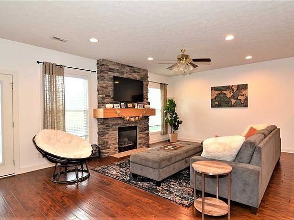 Welcome home to 5320 Jona Gold Ct.! This move in ready 3 bedroom home offers 2 full bathrooms, an open floor plan and is situated on a cul de sac on a lovey lake lot. You'll be impressed with the gorgeous engineered hardwood flooring that runs throughout the main living space. The living room provides a beautiful view of the lake as well as a stunning stone fireplace with large wood mantle. The living room is open to the spacious kitchen that offers castled cabinetry, tiled backsplash, an eat at breakfast bar as well as a built in bench for additional dining space. All the kitchen appliances are included in the sale of this home. The master bedroom en suite has tons of storage, tile flooring and walk in closet. There are 2 more spacious bedrooms as well as a full guest bath. You'll enjoy the fall evenings on the covered patio that overlooks the lake. This home is definitely a must see!