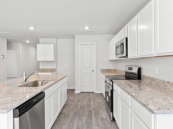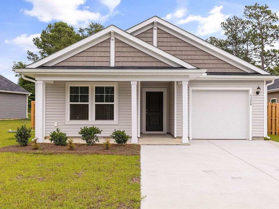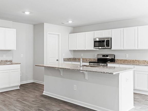 This beautiful Vantage plan features three nice-sized bedrooms with two full baths! When entering this home, you will notice the fabulous front porch, which can accommodate chairs or a bench - perfect for enjoying a leisurely afternoon. Once inside, you will find a large kitchen with white cabinets, an oversized island, granite countertops, stainless appliances, and a large pantry! The dining area looks out over the patio and private woods in the backyard. With the Kitchen and dining area opening to the spacious family room, the area offers excellent entertaining possibilities and generous wall space. The primary bedroom will fit a king-sized bed, and the primary bathroom features quartz countertops, double sinks, a walk-in shower, and a large closet. This home is ready for immediate move-in!
