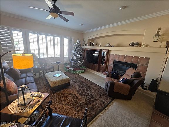 Fantastic large 1-story in the heart of Southern Highlands in a nice gated community !! A lovely home offering 4 bedrooms, 1 den with built ins, shutters throughout, 3 car garage, pool and spa ! Enter through a gated entry way to experience a large living area overlooking the pool/spa area ! Kitchen offers granite counters, custom cabinets and opens into a large family room overlooking the pool area. Home offers high ceilings, ceiling fans throughout, 2 primary bedrooms on either end of the home, family room with beautiful fireplace, too much to list. Come see and fall in love....