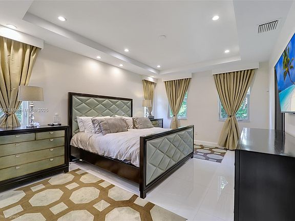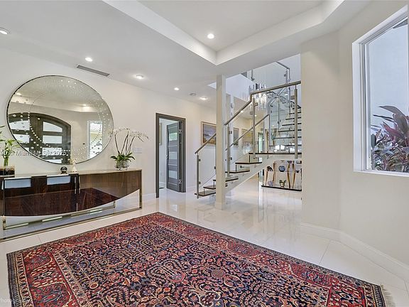 Newer construction with $600K in updates near Sunset Elementary Magnet School. Designer impact doors and windows. Pure white glass porcelain flooring throughout. Two master suites with walk-in closets, plus two additional suites and a multipurpose bedroom. Functional layout with three beds downstairs and two upstairs. Top-of-the-line Italian kitchen with Miele stainless steel appliances. Modular aluminum/glass closets in every bedroom. Italian wooden doors w/ aluminum detailing. Integrated central vacuum system. Automatic gate w/ video door entry and full exterior CCTV coverage. Heated saltwater pool w/waterfall. 2018 addition of barbecue porch with Kalamazoo appliances, True refrigerator and ice maker, outdoor TV. Marble travertine exterior and Arcadia sun deck with remote-operated roof.