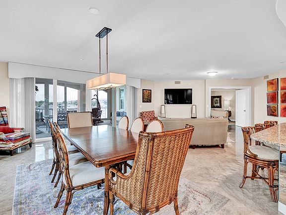 This spacious harbor front condo features many custom upgrades including granite counters and top of the line appliances in the kitchen. The condo has been re-piped, has electric shutters and a new A/C in 2022. There is a two-car garage and an air-conditioned storage room.
