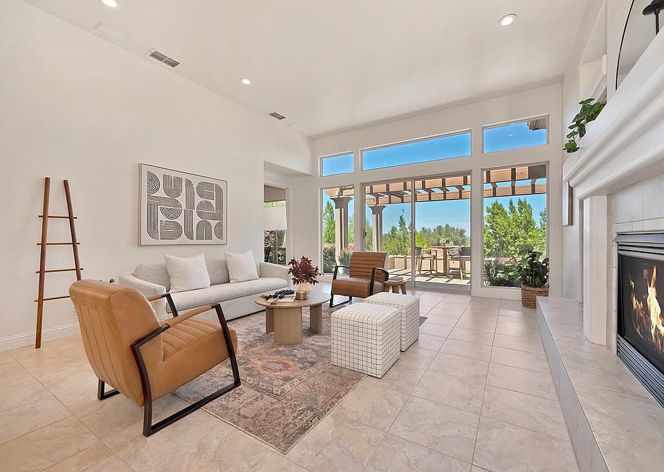 Welcoming fireplaceElegant single-story residencePrivate patio accessExpansive windowsOpen-concept layoutLuxurious primary suiteStunning junior primary suite
