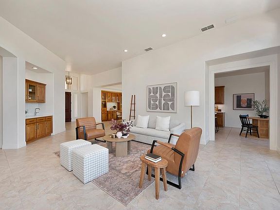 Welcome to this elegant single-story residence in the prestigious gated community of Serrano, ideally located near the renowned private Serrano Country Club. This beautifully updated home blends sophistication with comfort, offering an open-concept layout filled with natural light and expansive windows that frame picturesque views creating a serene backdrop from nearly every room. The stylish updated kitchen features upgraded appliances package, sleek countertops, designer backsplash, walk-in pantry, bar area, and a cozy dining nook. Entertain in the formal dining room or unwind in the great room with soaring ceilings and a welcoming fireplace. A versatile den with custom built-ins provides the ideal space for a home office, retreat or third bedroom. The luxurious primary suite includes private patio access, a spa-inspired bath with soaking tub, walk-in shower, and oversized closet. A stunning junior primary suite is the ideal guest quarters. Enjoy seamless indoor-outdoor living on the expansive patio perfect for alfresco dining, lounging, and entertaining. Owned solar adds energy efficiency and long-term value. A truly special opportunity to experience refined living, scenic beauty, and the elevated lifestyle Serrano is known for.