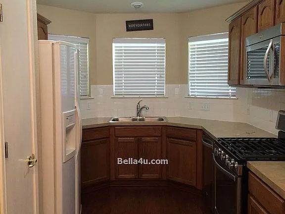 Great Austin stone home and great floorplan with 3 bedrooms and 2 bathrooms. Kitchen, dining and living room w/ fireplace with an open floorplan. Peaceful covered patio with recently stained deck. Wood laminate floors throughout and tile in bathrooms.