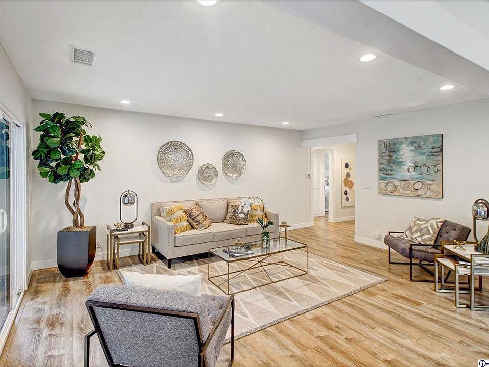 LOCATION, location...location! Updated WALNUT ACRES 3+2 charmer in the highly desired pocket of Woodland Hills! Home has been completely remodeled within the last 3 years and owners spared no expense or attention to detail! Fresh paint throughout! Beautiful modern galley kitchen with farmhouse sink and black stainless steel appliances! Light, bright and modern spa-like bathrooms! Luxury vinyl plank flooring throughout! Recessed lighting and all new light fixtures throughout! You can see your private and expansive landscaped backyard through multiple glass sliding doors spanning across the back wall of the living room and dining room! Walk out and watch TV under your cozy covered patio or enjoy some fresh air under the partially covered approx 500 sq ft custom pergola! Great for entertaining! Stone fireplace in the dining room! Spacious laundry room! Extra pantry closet! Garage was converted to a climate-controlled recording work space and is virtually soundproof with double insulation and drywall. It could be converted back to a garage or turned into an ADU! Spacious driveway with an automatic gate for extra security! Custom storage shed and trash bin housing! New HVAC system and ducting installed in Nov 2018! New double-paned windows! Custom front door with keyless entry! Tankless water heater and so much more! A short walk to the restaurants, bars and shops on Ventura Blvd! Easy 101 Fwy access! Minutes to the Fallbrook Shopping Center! A quick drive to Malibu! And a short d