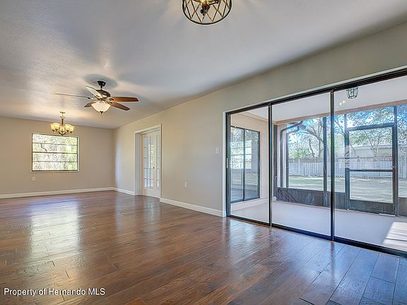 Back on market. No fault of house... Wow! Better than new!! Completely redone home in convenient and desirable Spring Hill location. Quality renovations rarely seen in this price range. When you walk into your new home, you will note the beautiful hickory hand-scraped wood floors, granite countertops in the kitchen and quality baseboard. Your open living space is flexible because it extends to a separate room with wide French doors which can alternately be used as the 3rd bedroom or a den. Totally renovated baths with new plumbing, quality tile work and cultured marble vanity tops. New almost everything! New appliances, new AC, new roof, new hot-water heater, new fixtures, new electrical outlets and switches, newer garage door, new garage door opener, new paint and new exterior doors. Painted garage and lanai floor surfaces and pull-down stairs for attic access. Your outdoor Florida living is also made pleasurable with a screened lanai, nice flat yard and pleasantly landscaped exterior. Want to stay on budget? A new roof and new systems not only mean low home insurance rates but also years of maintenance, worry-free living.