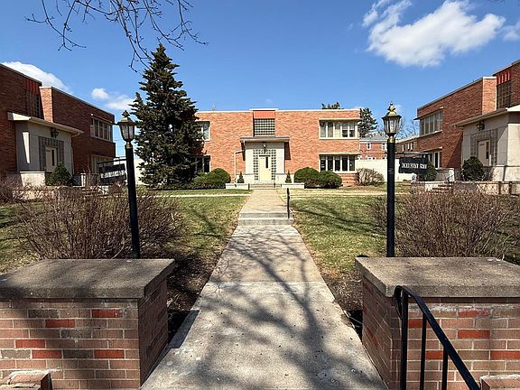 Stunning views in Country Club! This beautiful front-facing and move-in-ready condominium located in the heart of popular Country Club is within walking distance of Benson! This complex was built in 1942 with beautiful and authentic Art Deco design. You'll love the inlaid tile at the entry that continues up the entry stairs. The curved walls and distinctive windows adorn the corners of each unit allows natural light throughout. The large bedroom has duel closets and a corner window that offers a beautiful front-facing view of Country Club and neighborhood church. The formal dining area, updated kitchen, fresh paint and full bathroom with vintage tile to complete the space. From the kitchen, you can walk out to a rear exit, small patio or balcony to enjoy. The property is complete with your own private laundry room located in the basement and the lower level unit has ample extra storage. Single detached garage in alleyway with garage door opener.