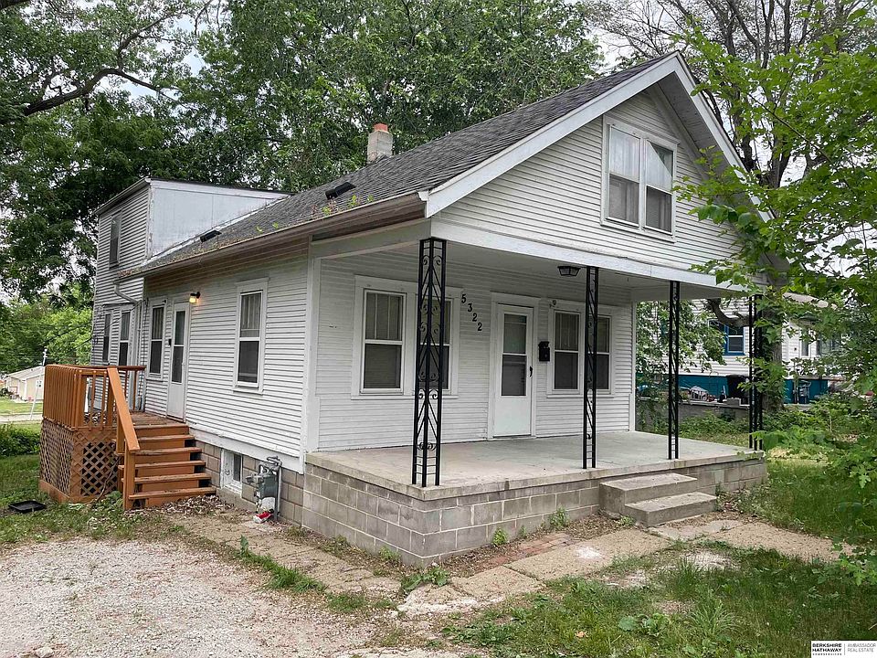 This 4 bedroom 1.5 story is spacious & affordable! Privately nestled behind your shrub wall & surrounded by mature trees, you'll find lots to love about this one! Uniquely large eat in kitchen, huge living room, double sink vanity in bath and charming characteristics upstairs. 2 bedrooms on the main & the 2 other true bedrooms sit on the upper level, alongside an additional living room / flex room. The unfinished walkout basement with tall ceilings open up another opportunity to gain equity! Within walking distance to Metro Campus, shops, bus stops & restaurants and minutes to Creighton, Midtown & Downtown Omaha.
