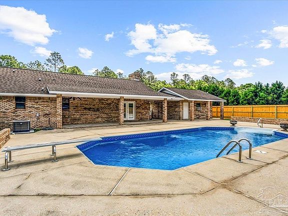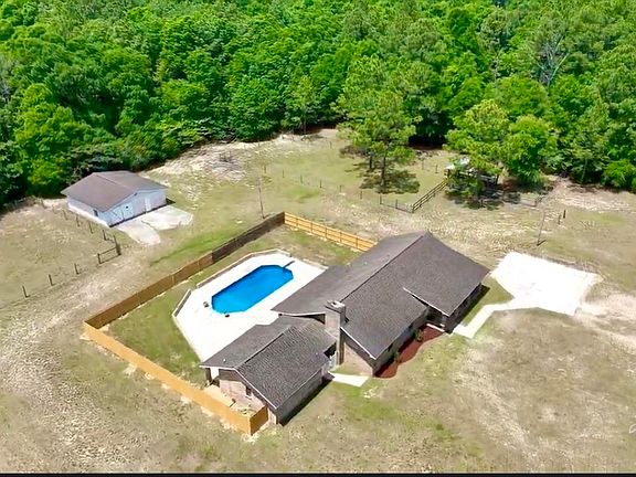 Horse-Ready Country Retreat with Pool! Welcome to your private slice of paradise. This charming all brick 3-bedroom, 2-bath home perfectly blends comfort and character, complemented by a detached 440 SF Guest Cottage (not included in the main home's square footage)—ideal for guests, a home office, or entertaining by the pool. The Cottage is plumbed for a kitchenette, features its own septic system, toilet facilities, water heater, and is connected to the main home via a breezeway for the perfect balance of privacy and convenience. Step inside to an airy, open-concept layout where the great room flows seamlessly into the beautifully updated kitchen featuring new granite countertops, new appliances, and a custom tile backsplash. Cozy up by the wood-burning fireplace in the great room. New luxury vinyl wood flooring in all bedrooms and fresh paint throughout. Outdoors, your sparkling in-ground pool is fully enclosed by a wooden privacy fence creating the ultimate backyard oasis for relaxing or entertaining. Nearby, the 900 SF powered workshop/garage is ready for hobbies, storage, or projects. Travelers will appreciate the dedicated RV parking with full hookups, including water, electric, and a dump station. Equestrian enthusiasts will love the 3 fenced pastures, 2 covered run-in shelters, hot-fence readiness, and water, electric, and lighting already in place for ease of care. Major home updates include a new HVAC system (2022), water heater (2024), and pool liner (2024). All of this is nestled on nearly 2.5 level, horse-ready acres. A welcoming covered front porch with a swing invites you to start your mornings with coffee or unwind at sunset. Located just 10 minutes from Crestview and 30 minutes from Eglin AFB, this unique property offers peaceful country living with modern convenience. Whether you're looking for serenity, space, or a turnkey equestrian setup this retreat has it all!